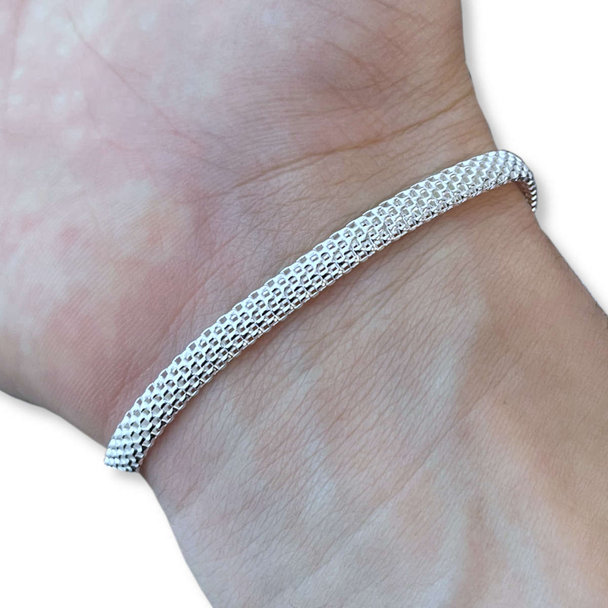 Pulseira feminina modelo pipoca achatada, tudo em prata 925, excelente acabamento e garantia vitalícia com relação à autenticidade do material, NÃO é banhado.