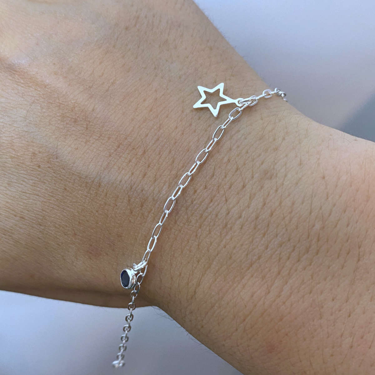 Pulseira Feminina Zircônia Azul e Estrela Prata 925 Legítima