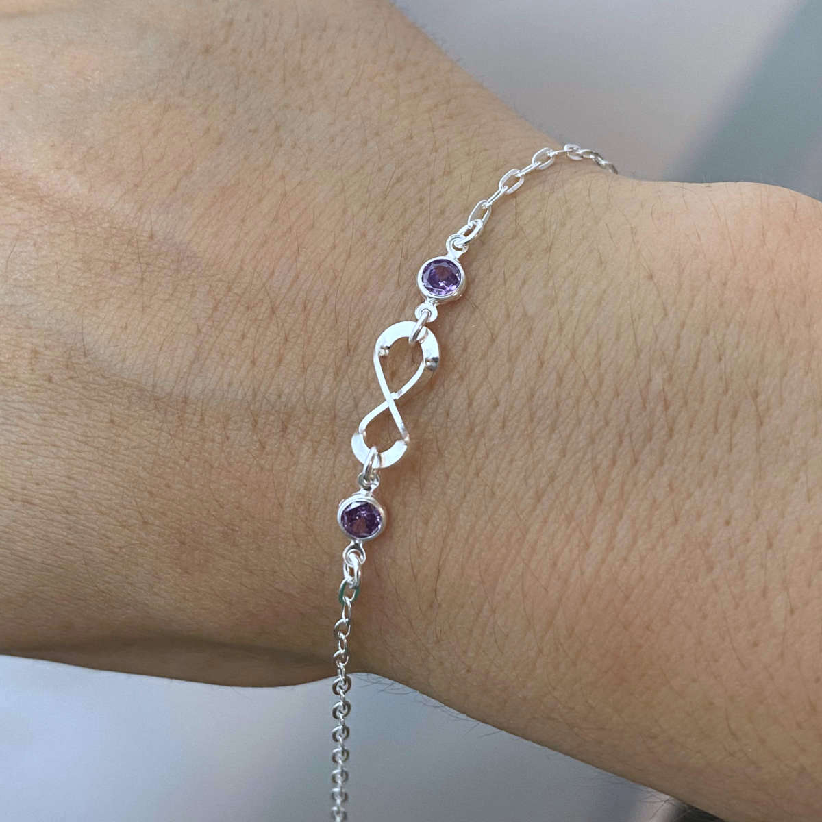 Pulseira Feminina Zircônia Roxa Infinito Prata 925 Legítima