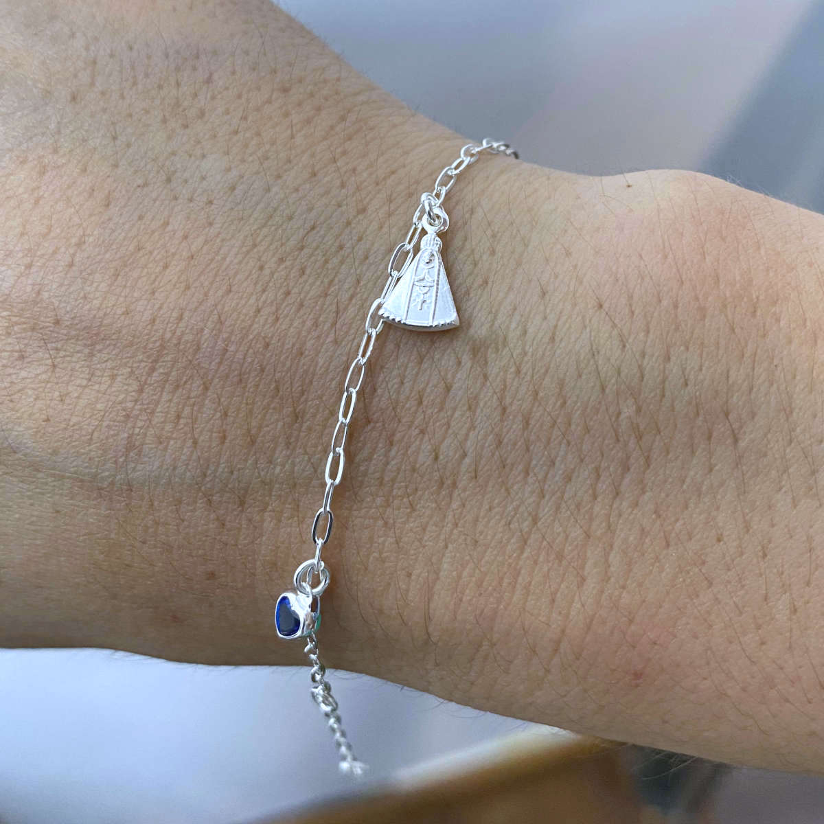 Pulseira Zircônia Coração Nossa Senhora Aparecida Prata 925